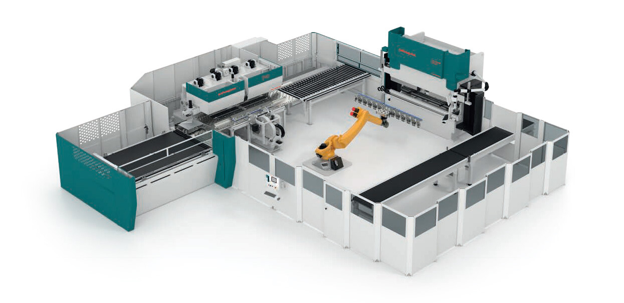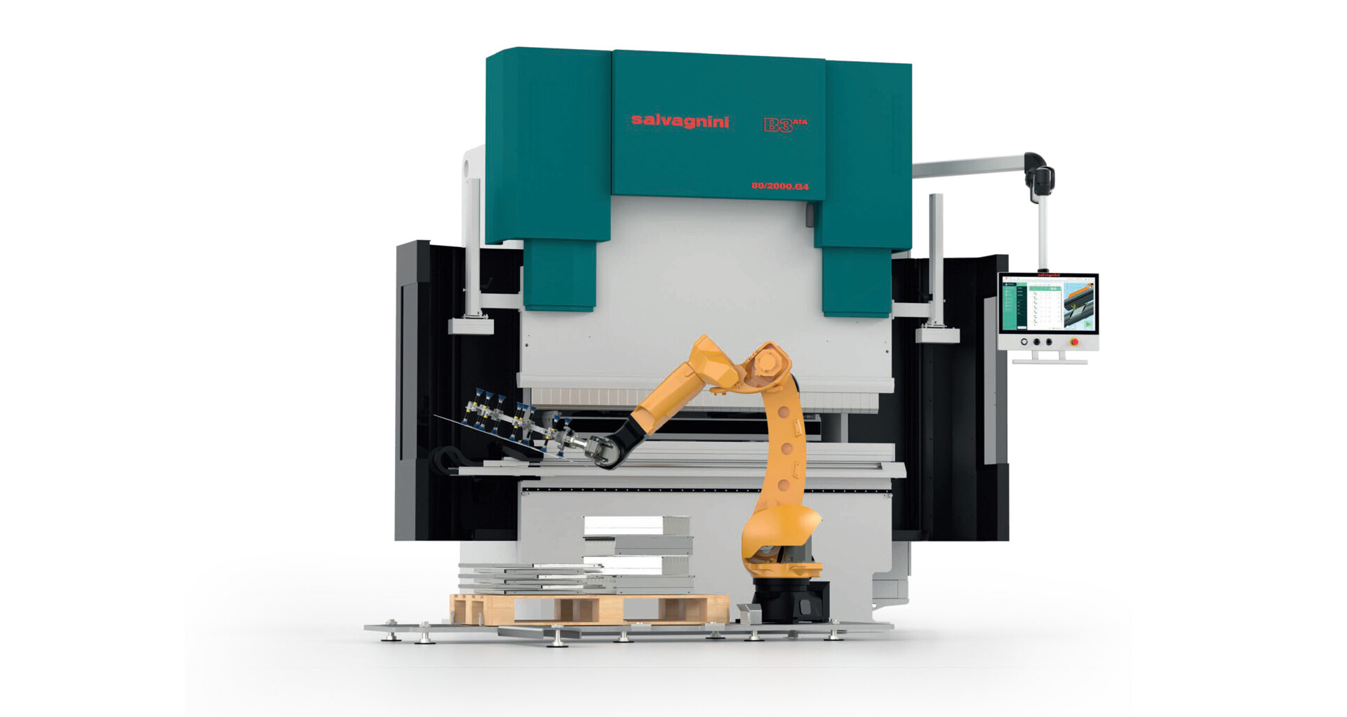 The robotized bending cell is an automatic solution for unmanned management of Salvagnini press brakes and consists of the intervention of a robot designed to manage all activities, completely autonomously.