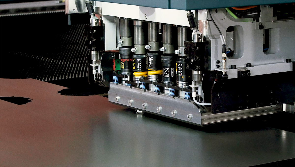 The S4+P4 line punches, shears and bends sheet metal totally automatically, without any intermediate handling. Among other benefits, the line allows to produce on demand and just in time, to increase capacity and velocity, to reduce lead time, to process different materials without retooling, to optimize manpower activities.