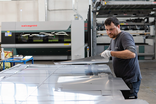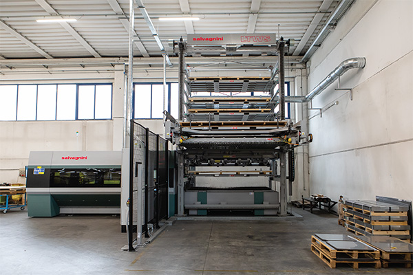 In 2021, Studio 54 realized that to keep it up with this growth, it had to increase its production capacity: the laser, in particular, already worked between 18 and 20 hours a day, partially manned. With the support of the Salvagnini specialists, the company chose a new L5 fiber laser fed by an LTWS store-tower in a compact configuration for automatic sheet metal loading/unloading.