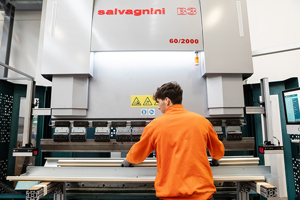 Il nuovo impianto è stato progettato e realizzato in collaborazione con Salvagnini. Il cuore è sicuramente MV, un magazzino automatico Salvagnini a vassoi bifilare da circa 1000 posizioni: lungo circa 70 metri, permette di gestire molteplici formati di lamiera e di collegare tutte le singole tecnologie, armonizzando le macchine e ottimizzando le varie fasi. MV alimenta diverse tecnologie: due linee S4+P4 Salvagnini e tre impianti Salvagnini di taglio laser a fibra L3 da 4 metri, versatili e polivalenti. Tutti gli impianti di taglio laser sono dotati dell’automazione di carico/scarico delle lamiere ADLL e di un dispositivo MCU per il sorting automatico delle parti. Infine, CMAlifts ha fatto un ulteriore passo in avanti nell’automazione installando e collegando all’impianto una cella di piegatura robotizzata ROBOformER di Salvagnini. Tutto l’impianto è controllato con OPS, il software di Salvagnini per la gestione in tempo reale della produzione. - I risultati