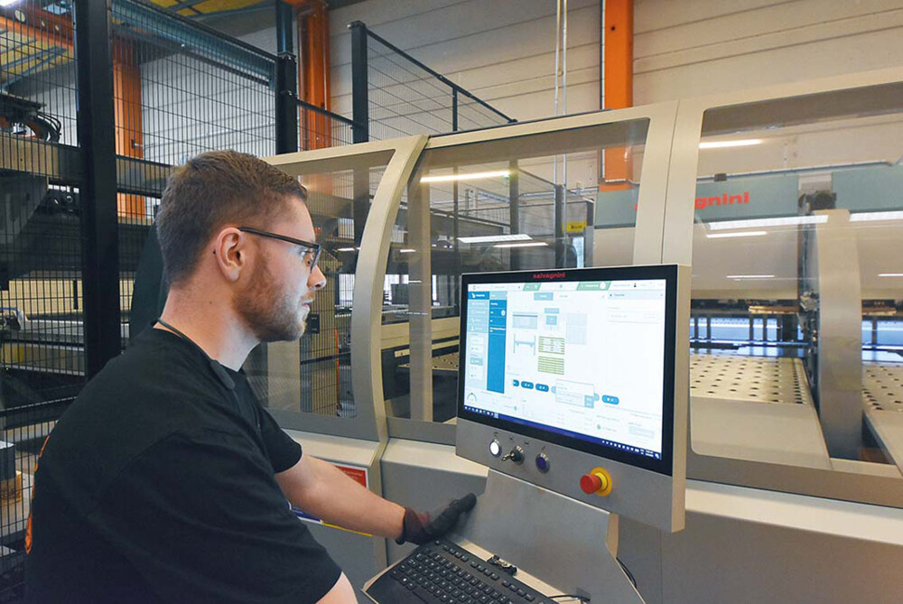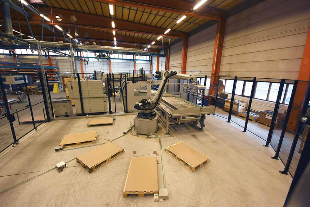 Panelbockmaskinen med inmatning och utmatning via datastyrd robotik.